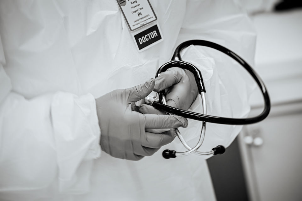 "In the world that Covid has created, my professional and personal lives have blended. Where last week’s images were anchored in the certainty of my everyday personal life, this week’s present the opposite: the front lines of the Covid fight as reflected in the faces of doctors I photographed this past week for Kaiser Permanente."